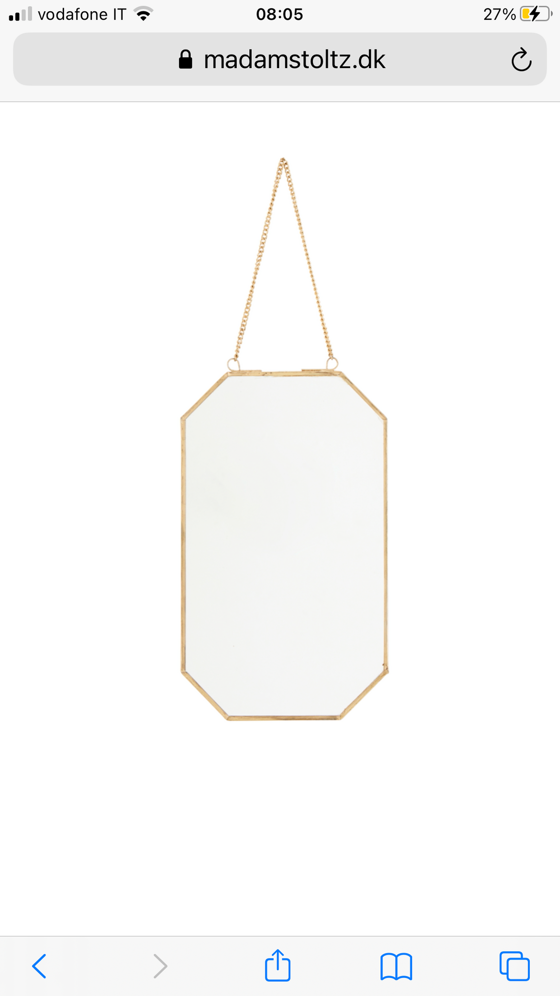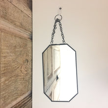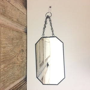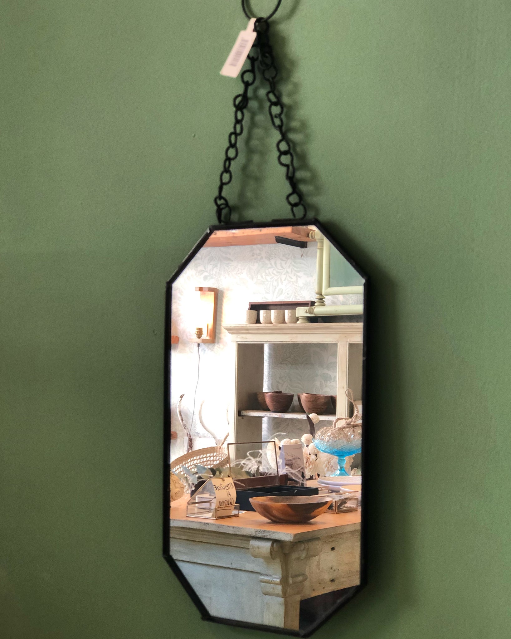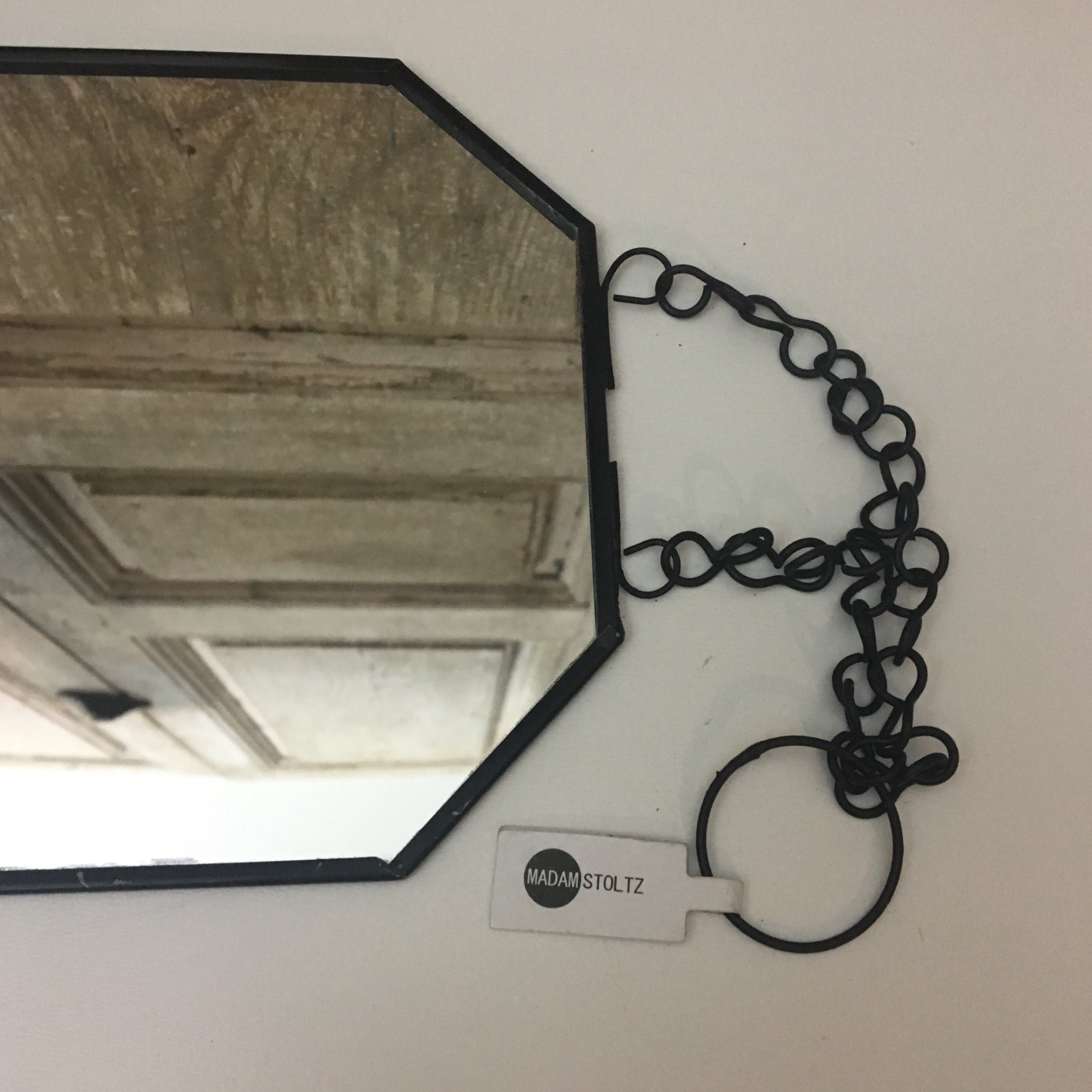 Specchio da parete, cornice in metallo finitura nero, catena. Prodotto da Madam Stoltz.