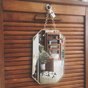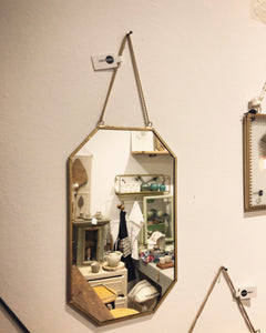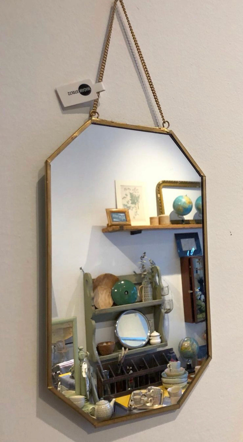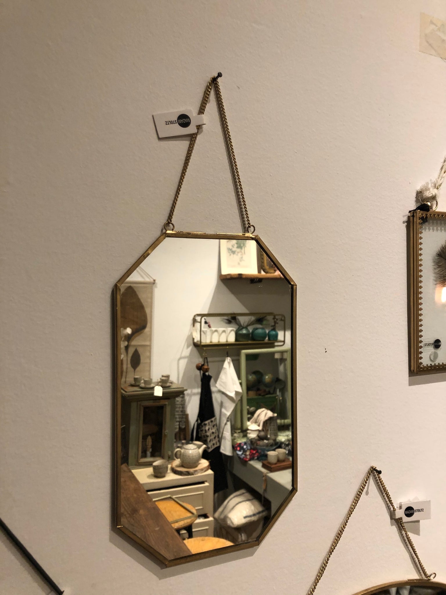 Specchio da parete, cornice in metallo finitura nero, catena. Prodotto da Madam Stoltz.