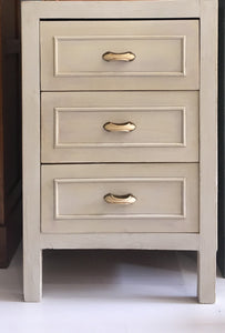 Vintage wooden chest of drawers, 3 drawers, ivory bakelite handles. Color ivory. Italy, about 1940.