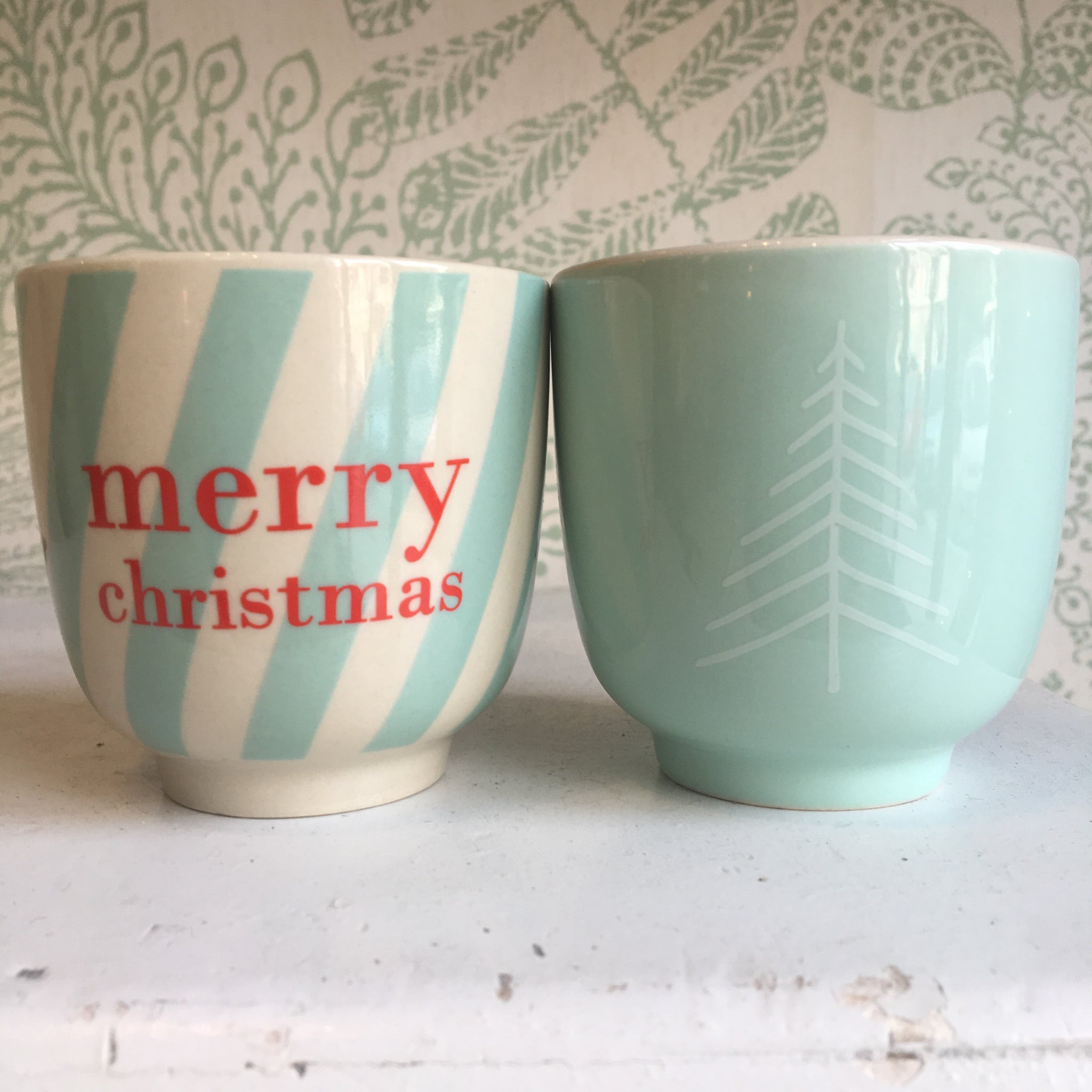 Pair of Merry Christmas cups in porcelain stoneware. Bloomingville manufacturer