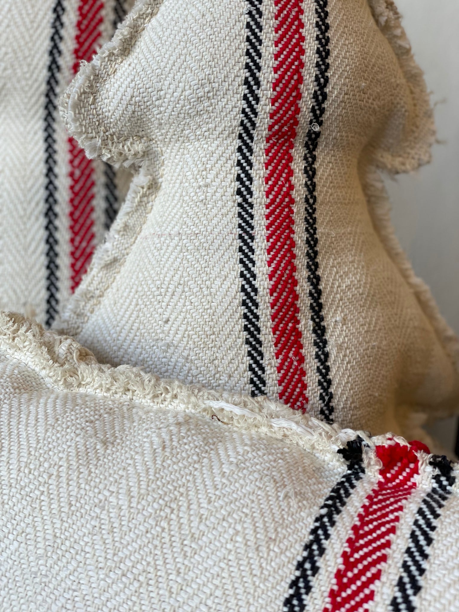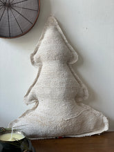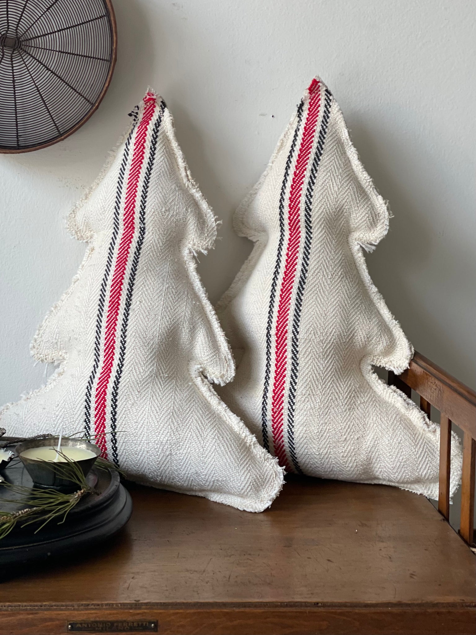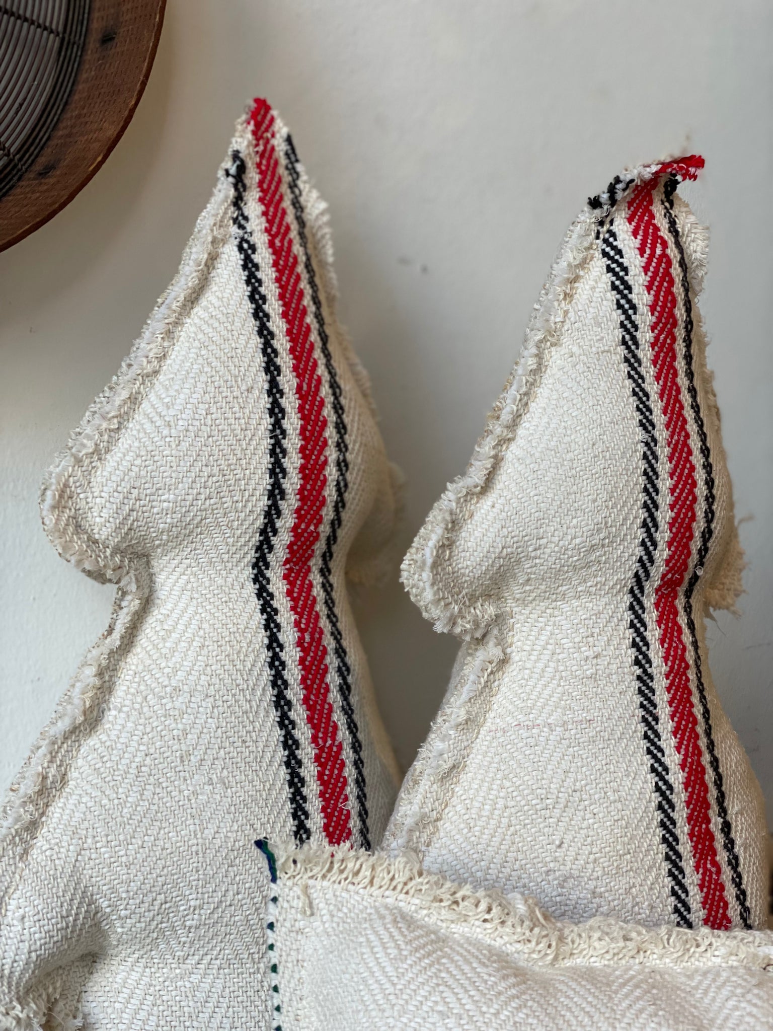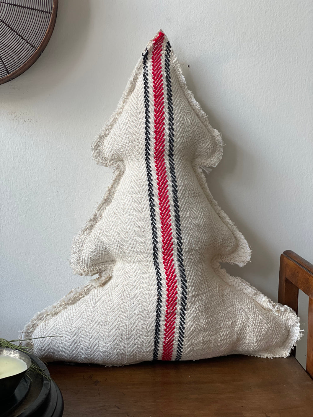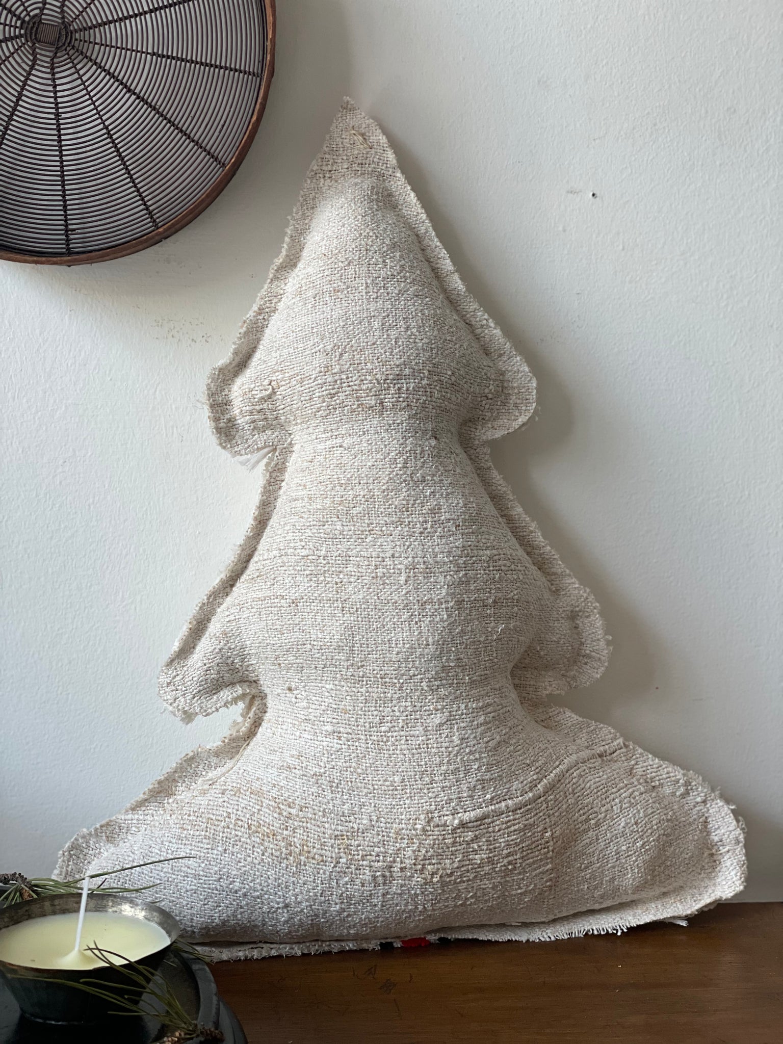Cuscino Albero di Natale realizzato artigianalmente utilizzando antiche stoffe in lino e canapa.