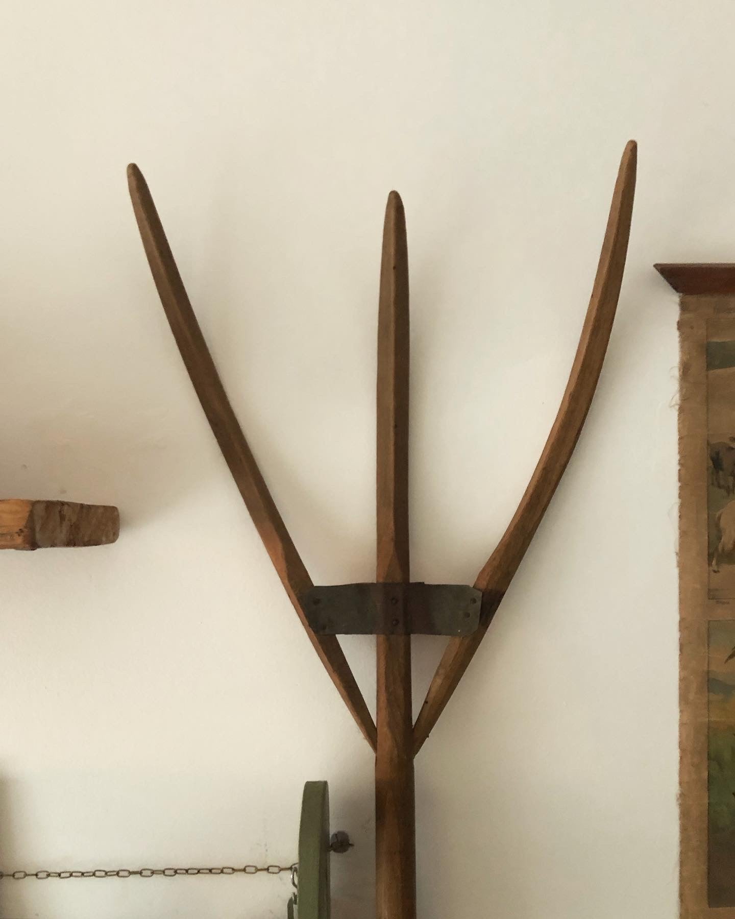 Antico forcone rustico artigianale in legno. Recuperato in Puglia, datato fine ‘800/inizio ‘900, presenta lievi segni del tempo. Pezzo unico di pregiata fattura.