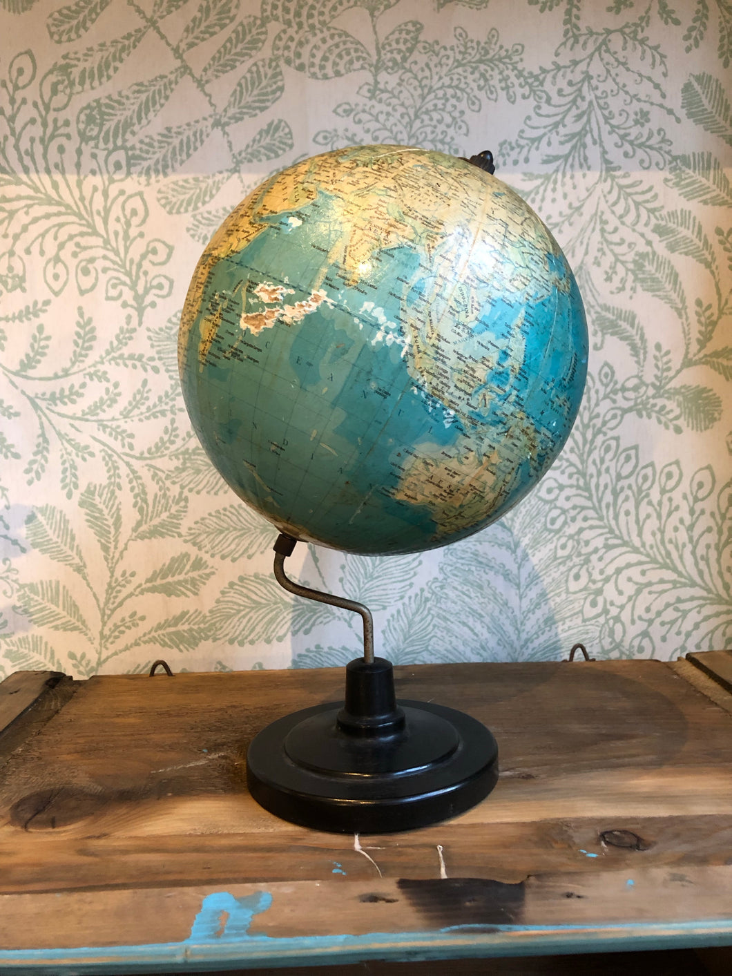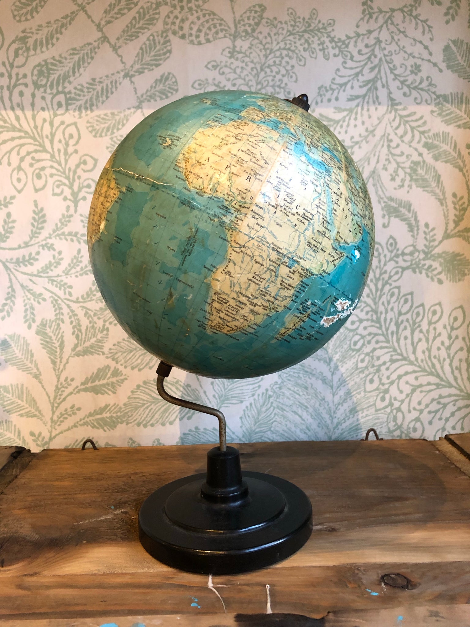 World map covered in paper. Europe, 1950/60. Single piece. It shows signs of aging and imperfections, as shown in the photos.