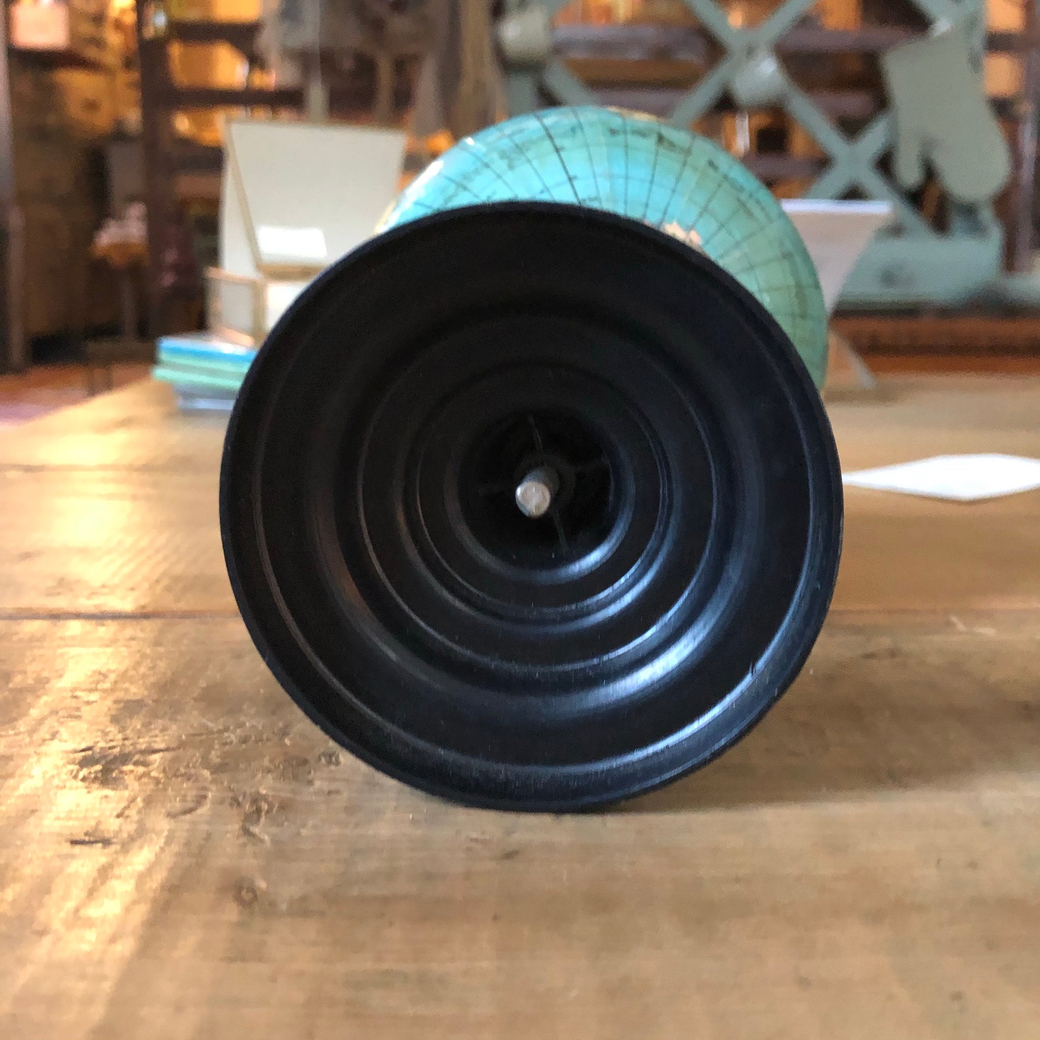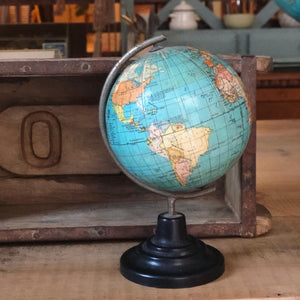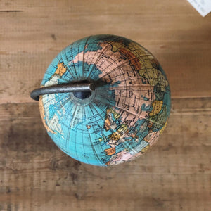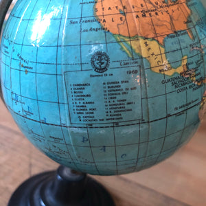 Small paper covered globe, bakelite base, black. Romania, Europe, circa 1960. It has slight signs of aging. Authentic decorative object. Measurements: h 16xD10 cm approximately