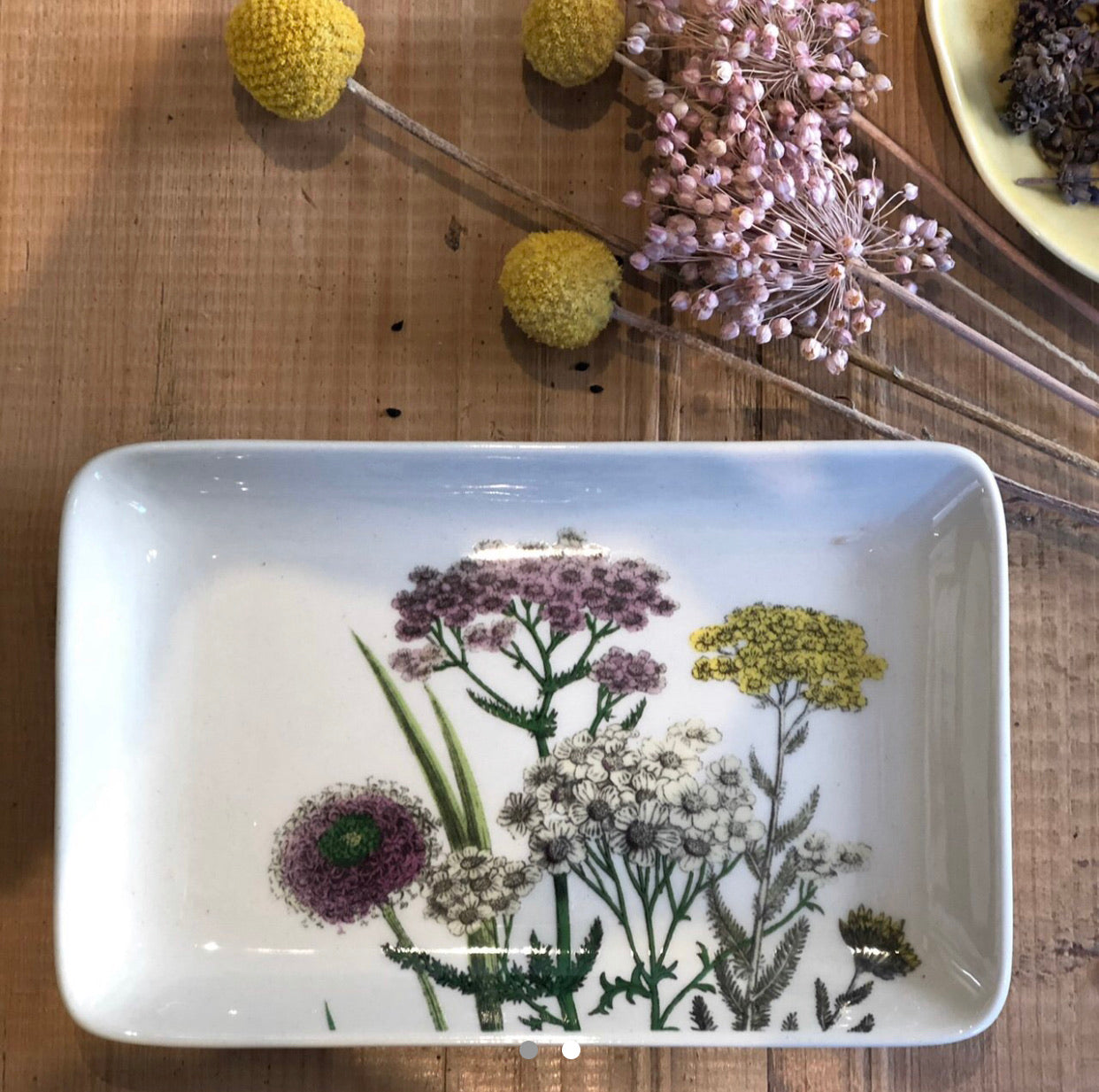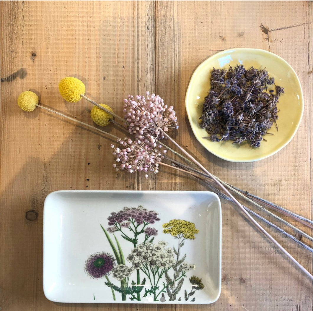 Piattino in ceramica smaltata, motivo botanical. Produttore Bloomingville. Misure: 19x12 cm