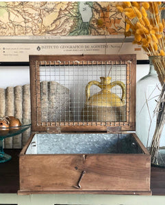Scatola zincata con coperchio a rete utilizzata per mantenere ghiaccio e alimenti freschi. Italia, metà del 1900
