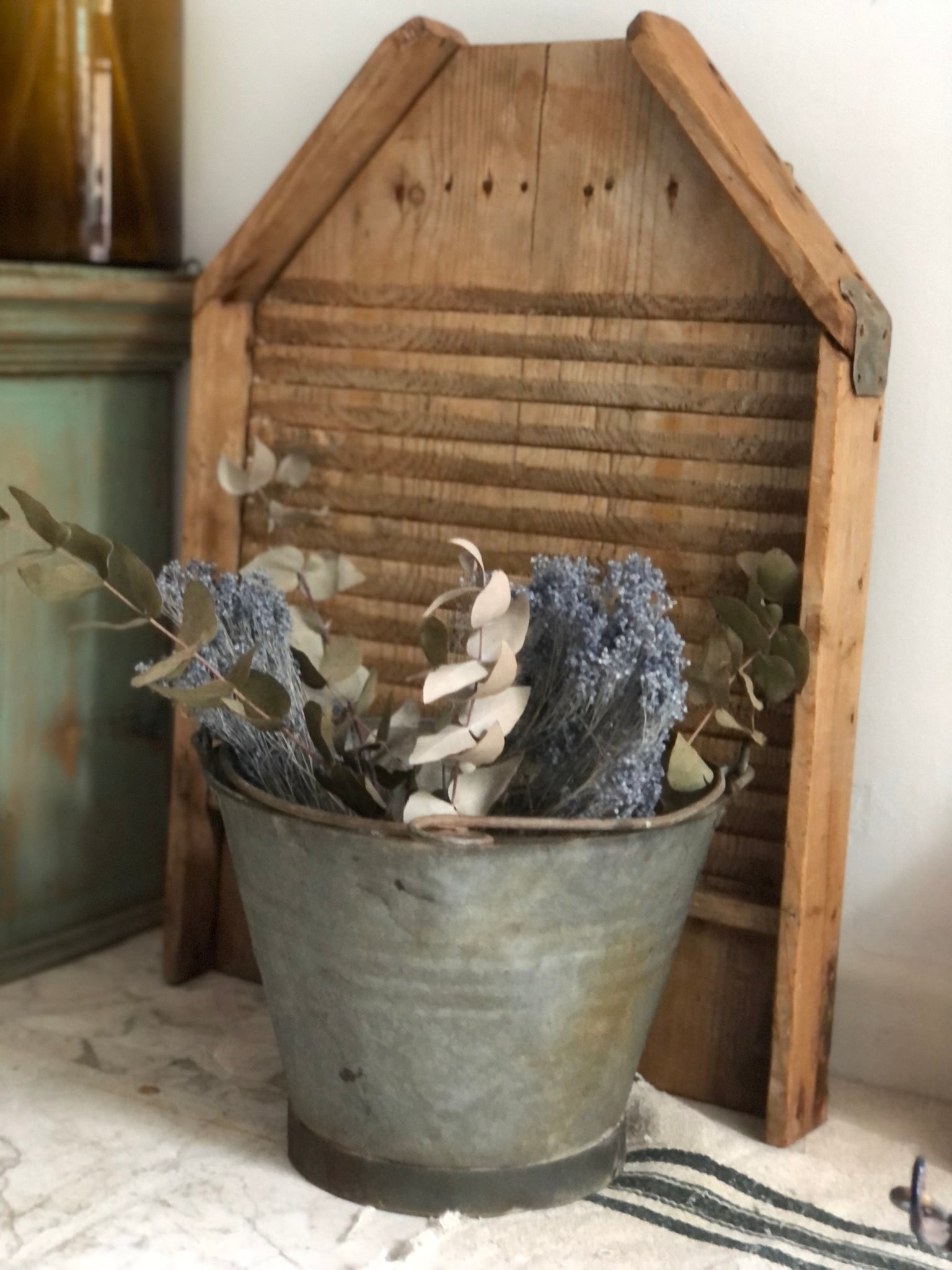 Secchio da pozzo vintage in metallo zincato/galvanizzato.