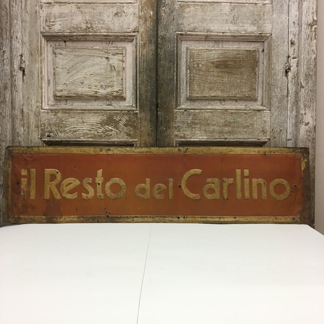 Authentic Resto del Carlino plate in sheet metal. Italy, 1950/60