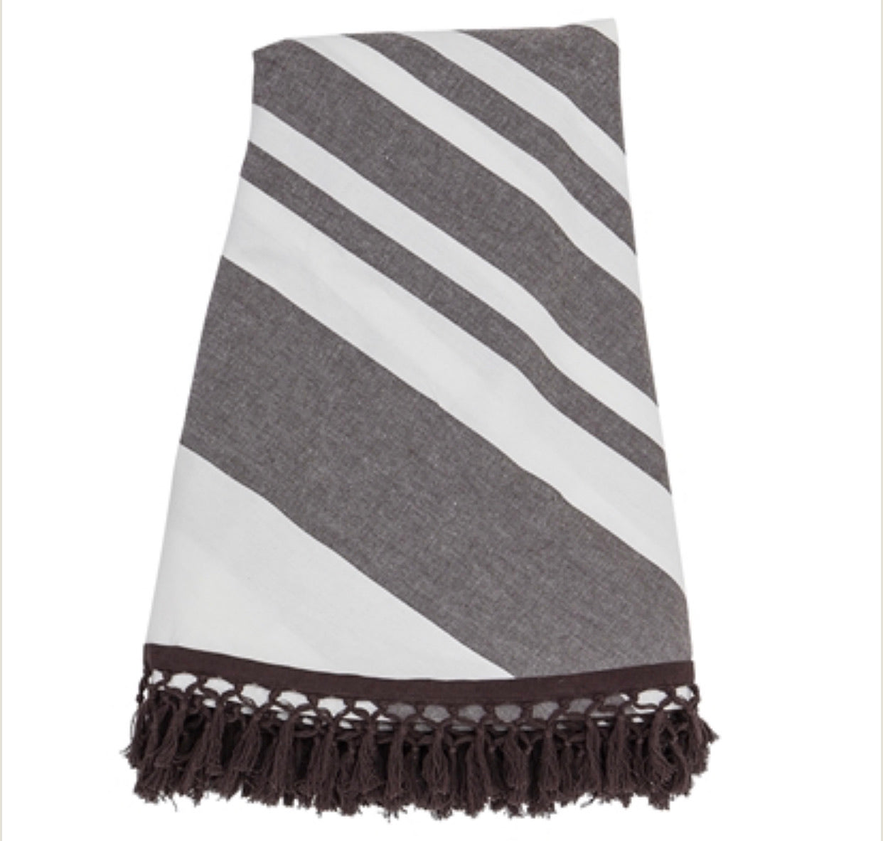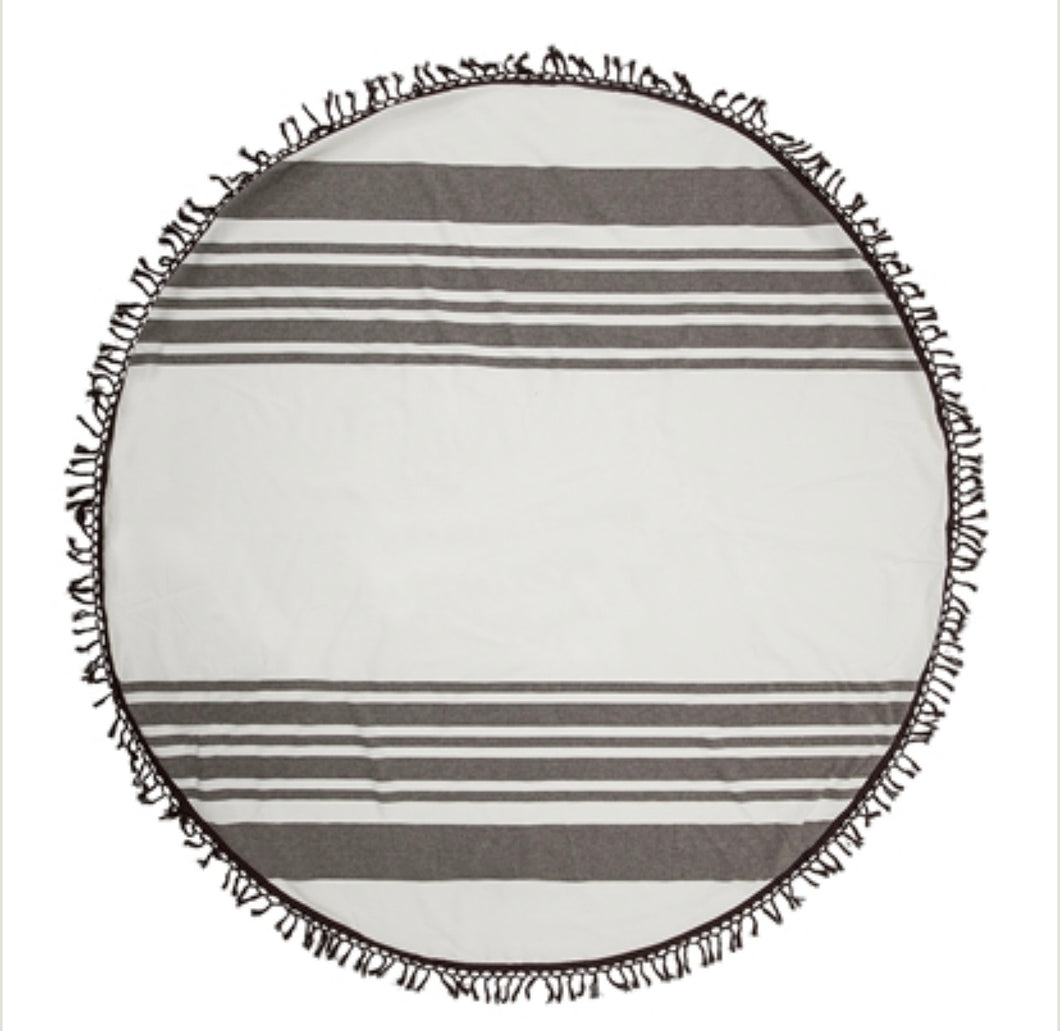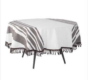 Tovaglia rotonda, Bloomingville. D 180 cm, cotone, bianco/marrone scuro
