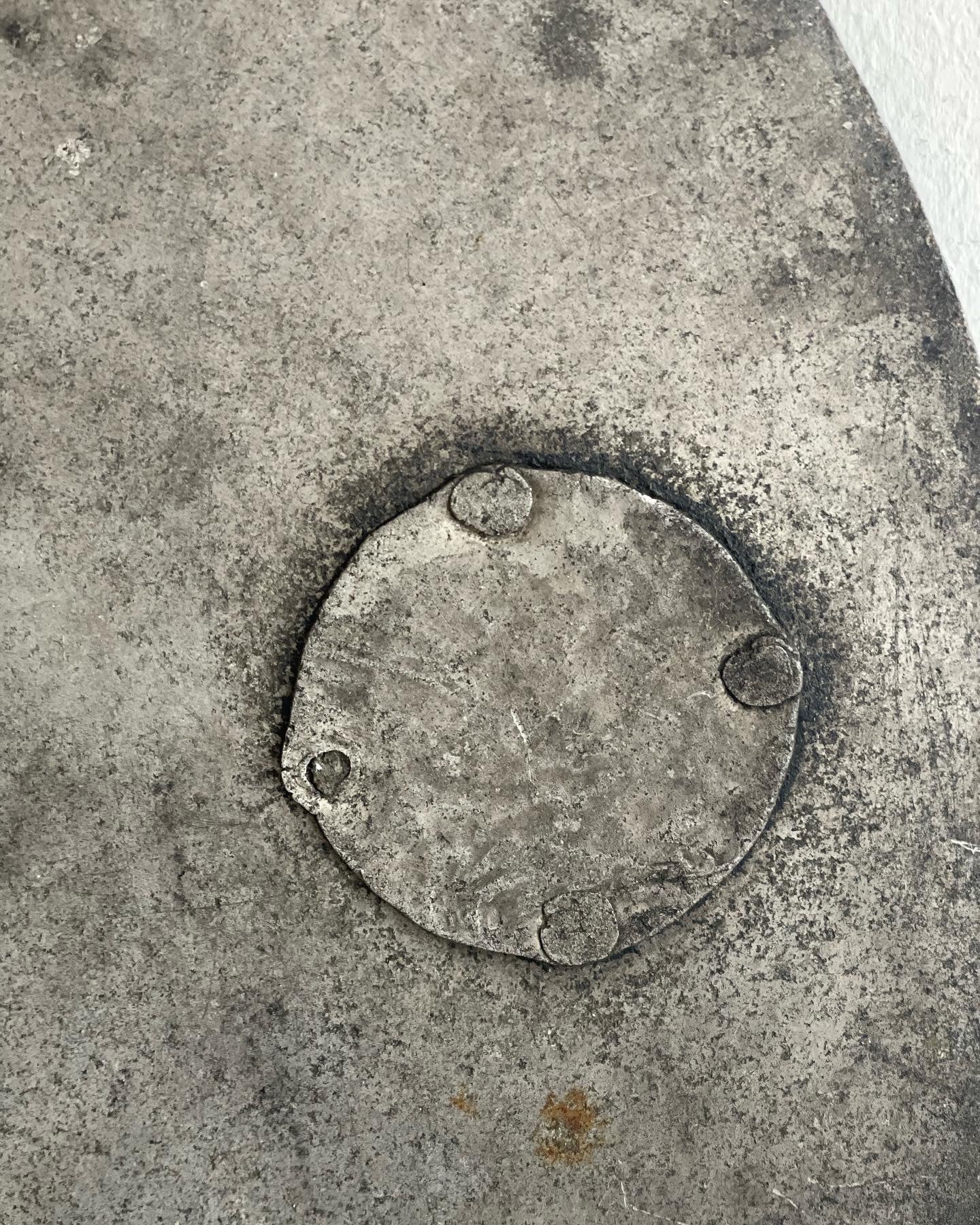 Antico coperchio per calderoni o paioli. Recuperato in Abruzzo, databile ai primi decenni del’900, realizzato artigianalmente, patina.