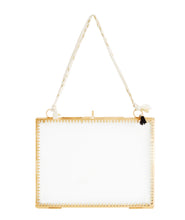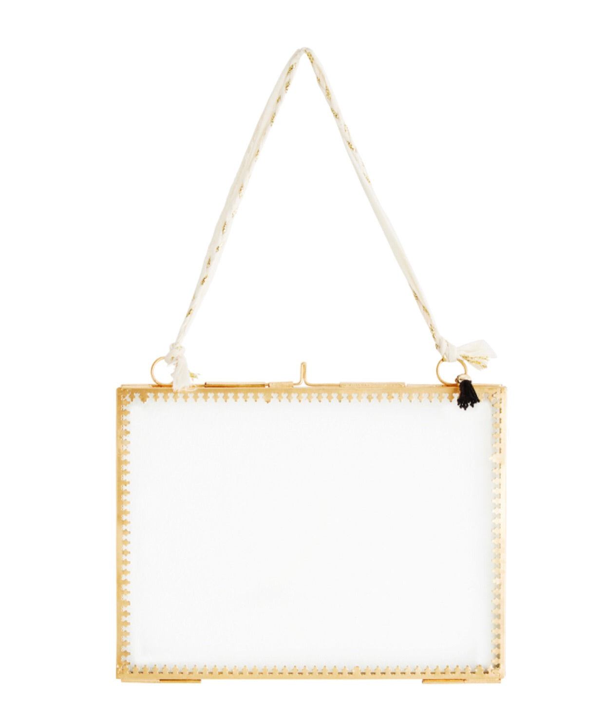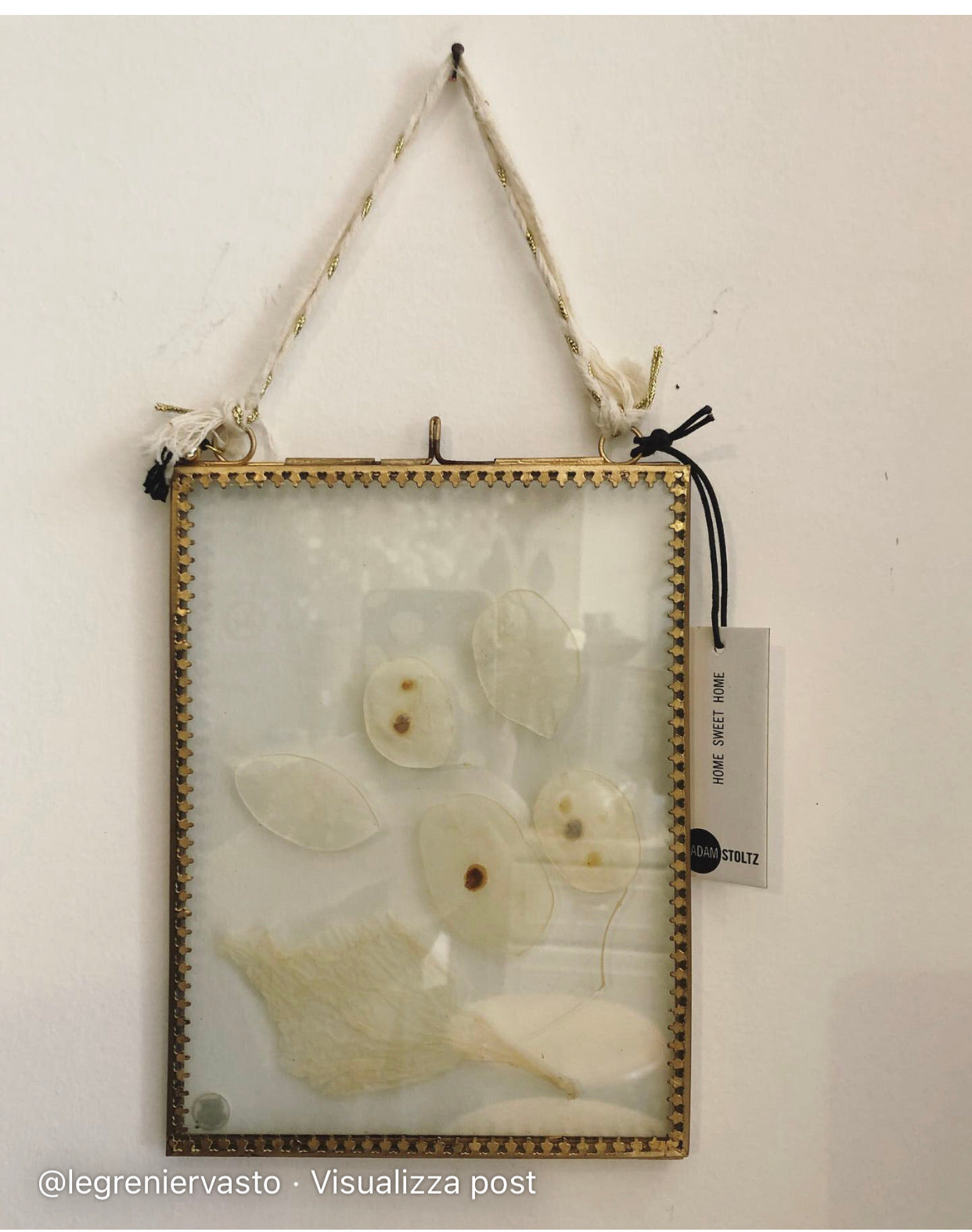 Portafoto in metallo e vetro finitura oro. Cordino in cotone, bianco. Produttore: Madamstoltz