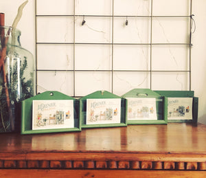 Bacheca portalettere in legno laccato. Europa, 1950 circa. Laccatura originale. Oggetto originale, presenta lievi segni del tempo.