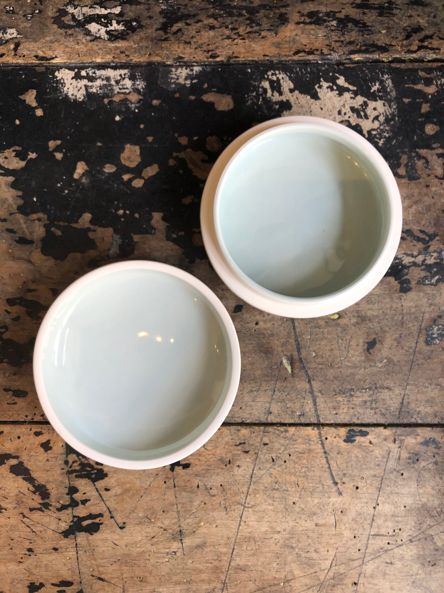 Scatolina portaoggetti con coperchio, ceramica decorata. Bloomingville, Margot. colore: bianco, decoro celeste, interno celeste