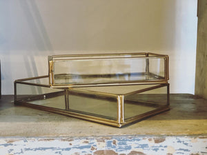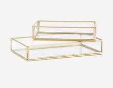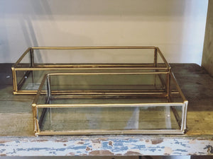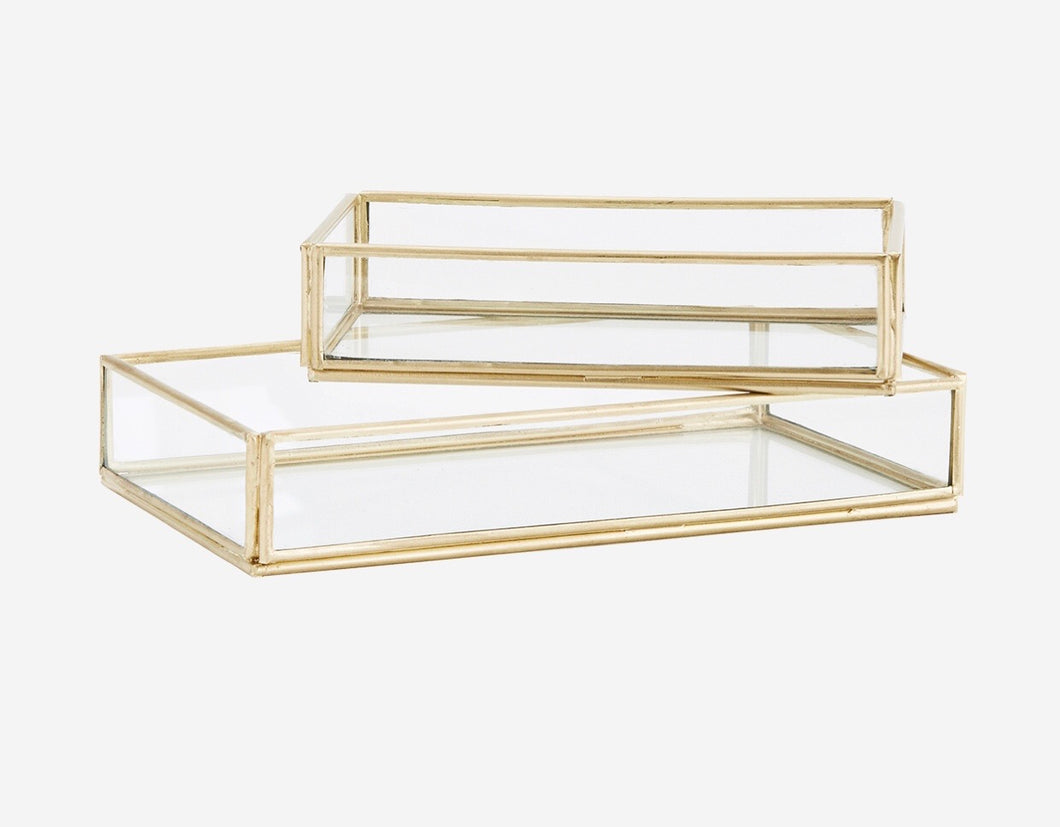 Set 2 scatoline vassoio in vetro, profilo in metallo finitura oro. Produttore madamstoltz