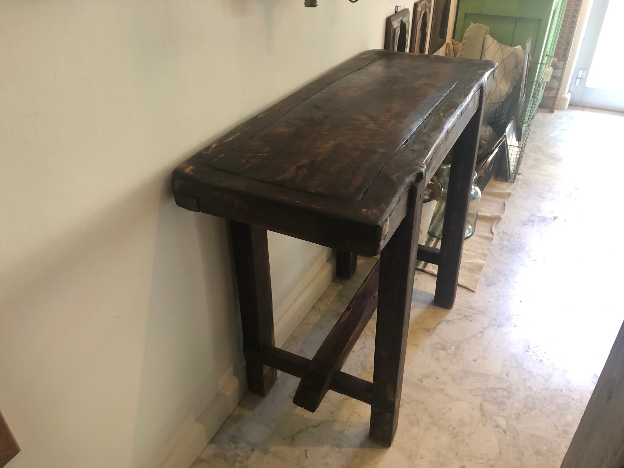 Tavolo consolle artigianale in legno massello. misure: L 105xp43xh82 cm circa
