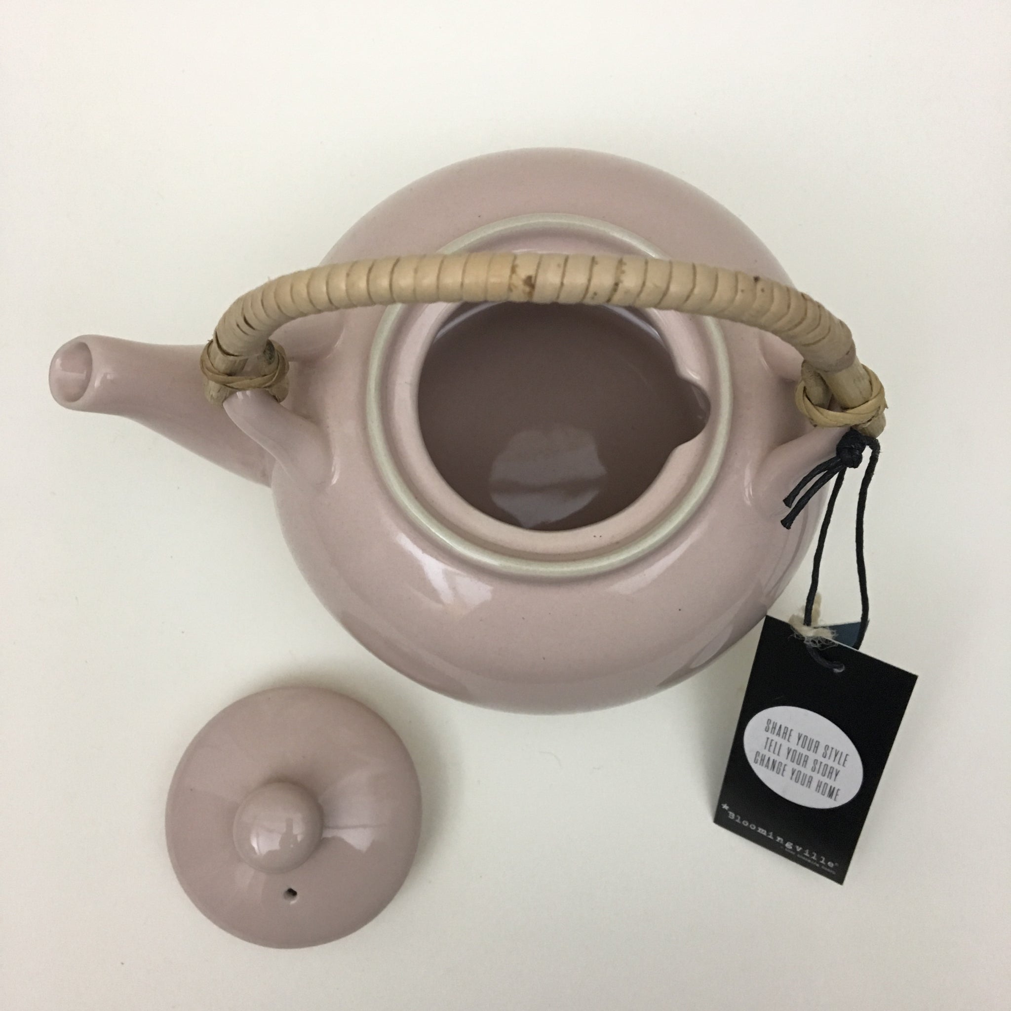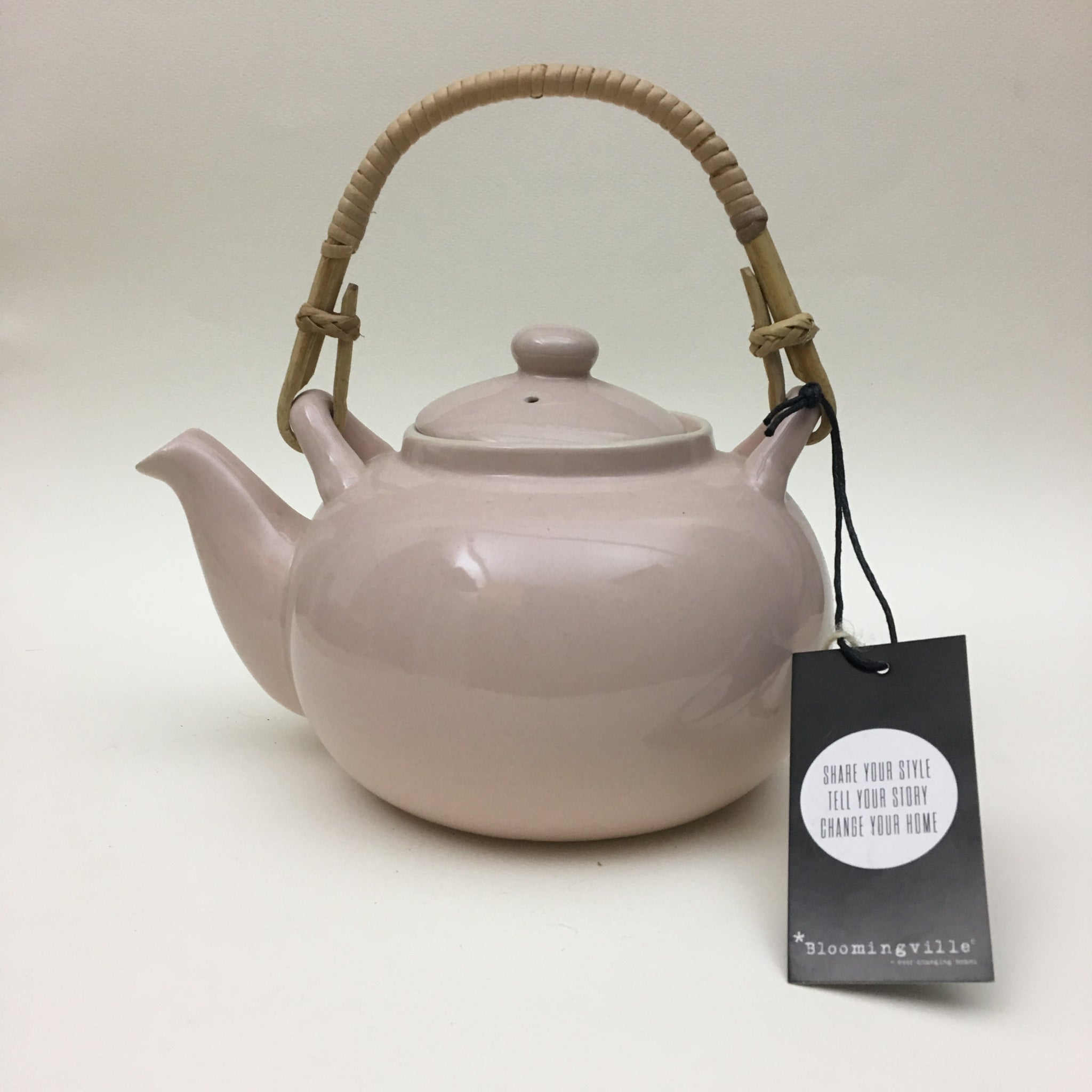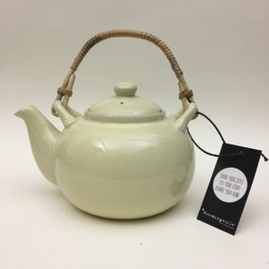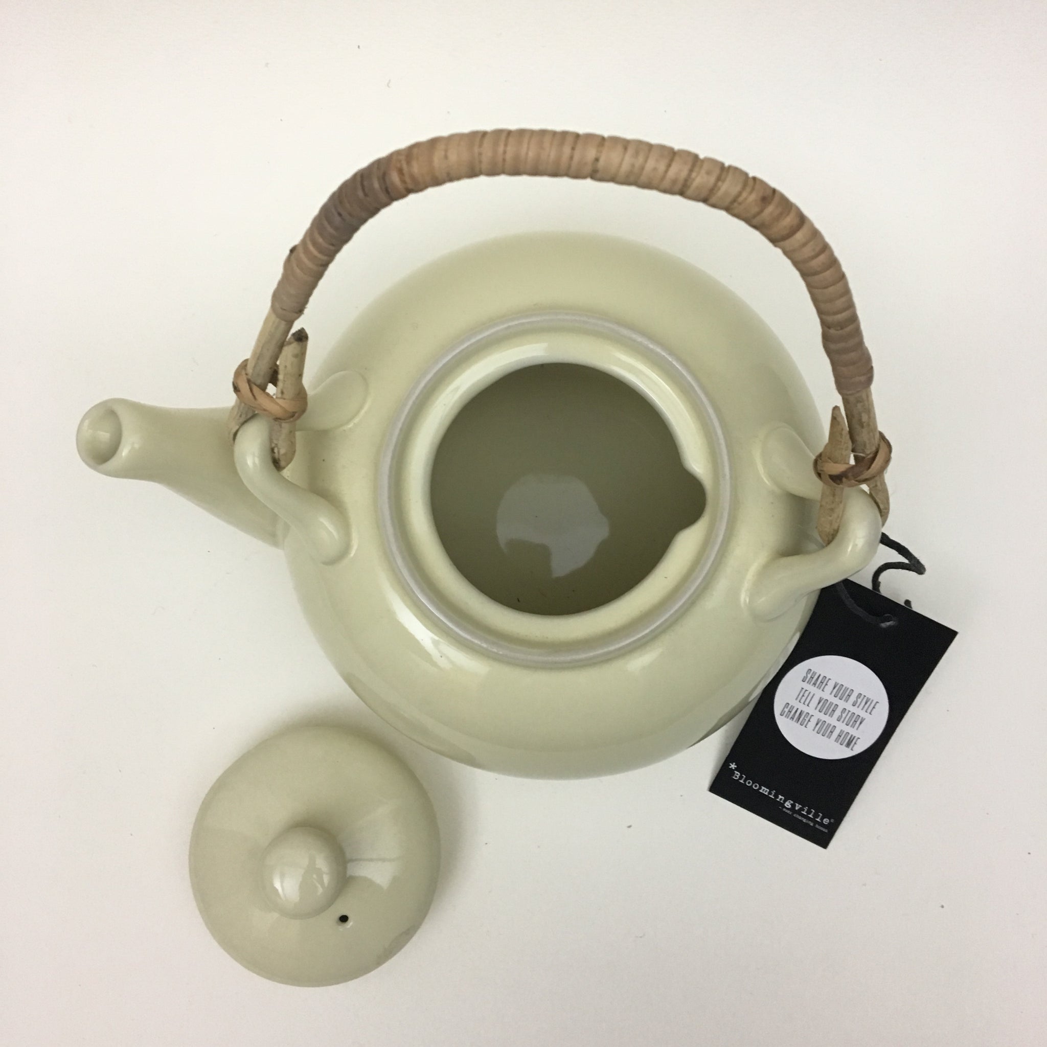 Teiera in ceramica con manico rattan. Misure: H 14x diametro 17 cm ca