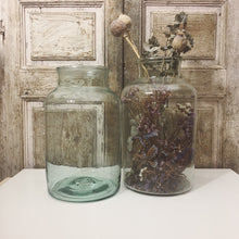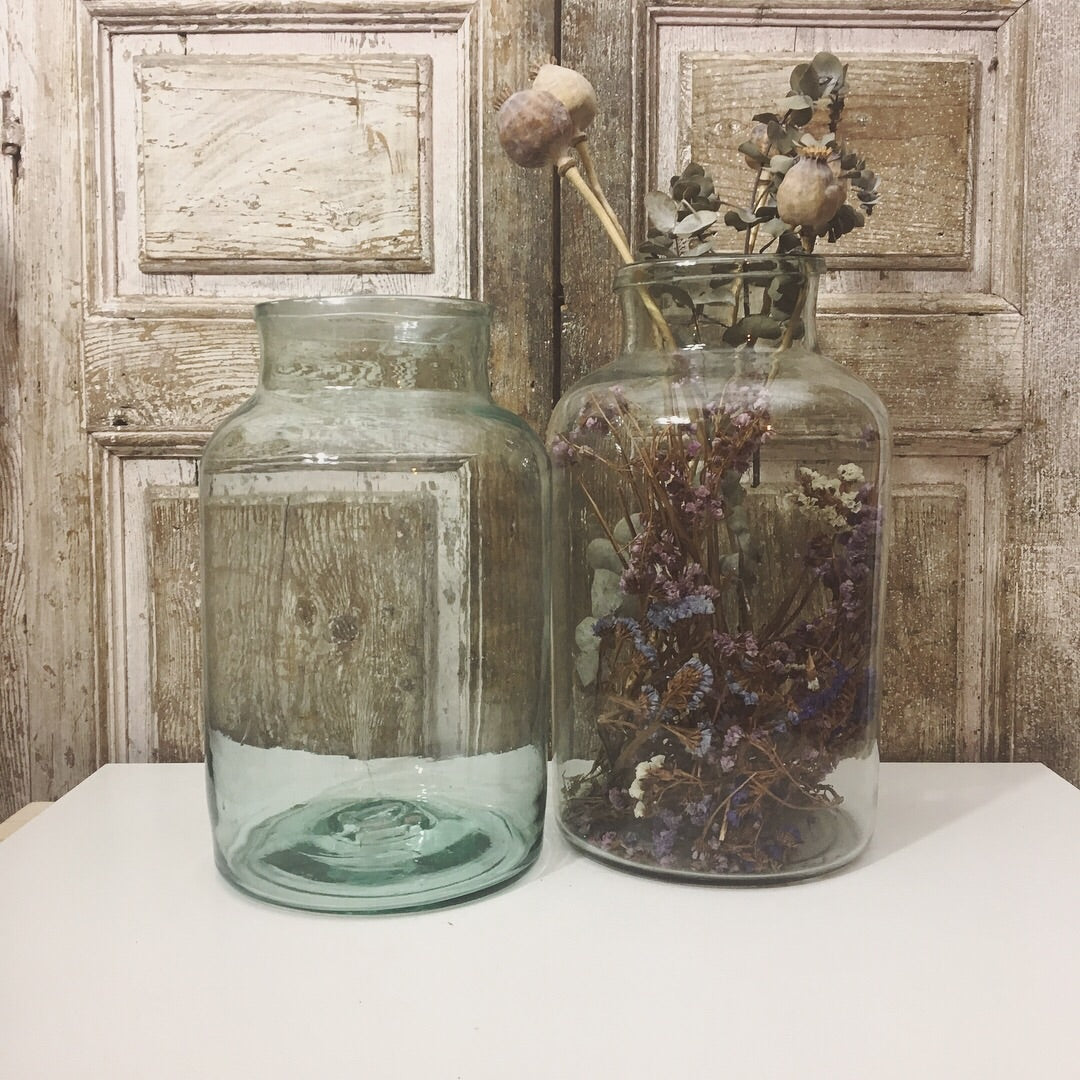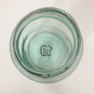 Vaso in vetro soffiato chiaro, formato 10 litri, apertura larga, realizzato artigianalmente. Europa, 1950. Presenta imprecisioni tipiche della lavorazione artigianale